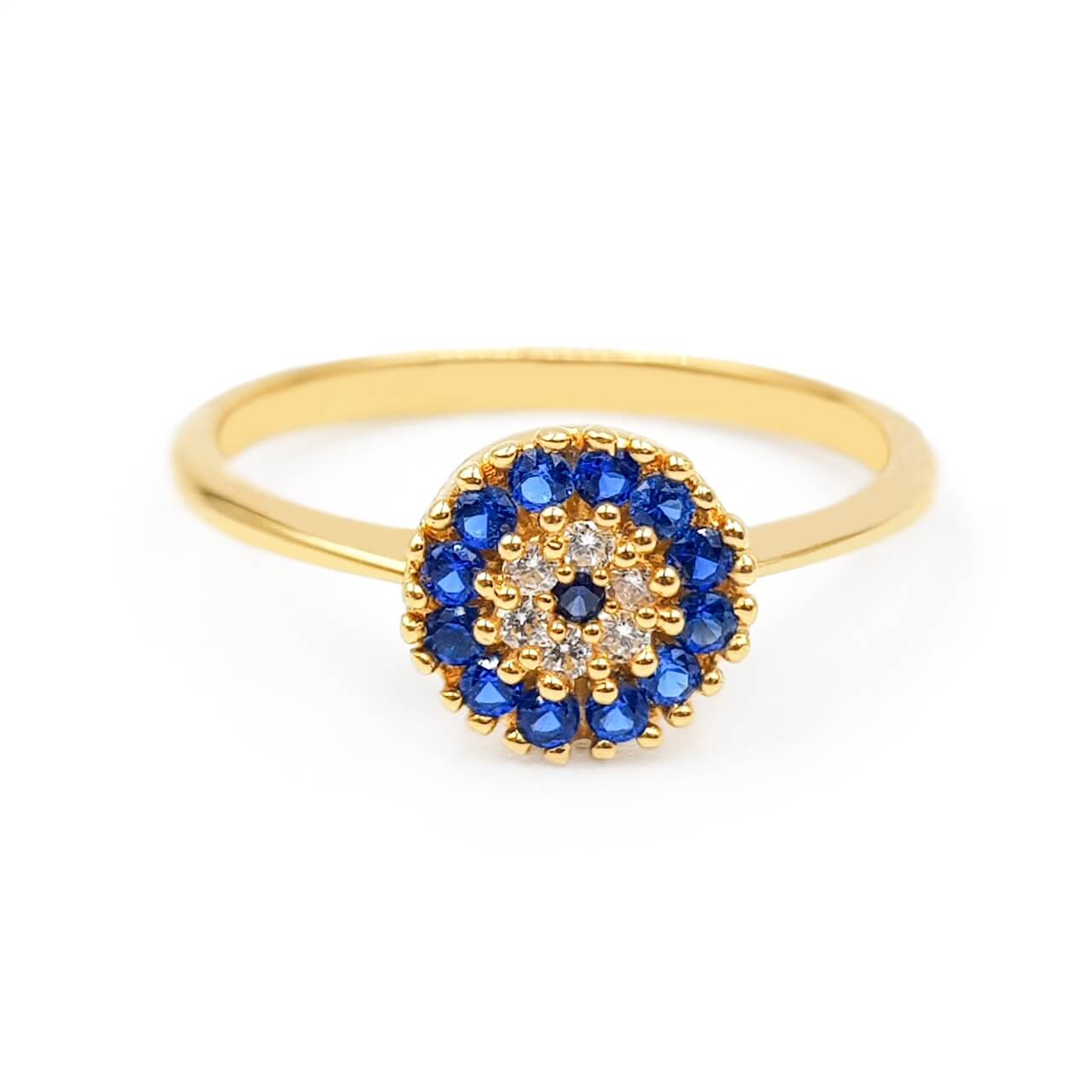 Anillo con engastes circulares de cristales, elaborado en Oro 18Kts.