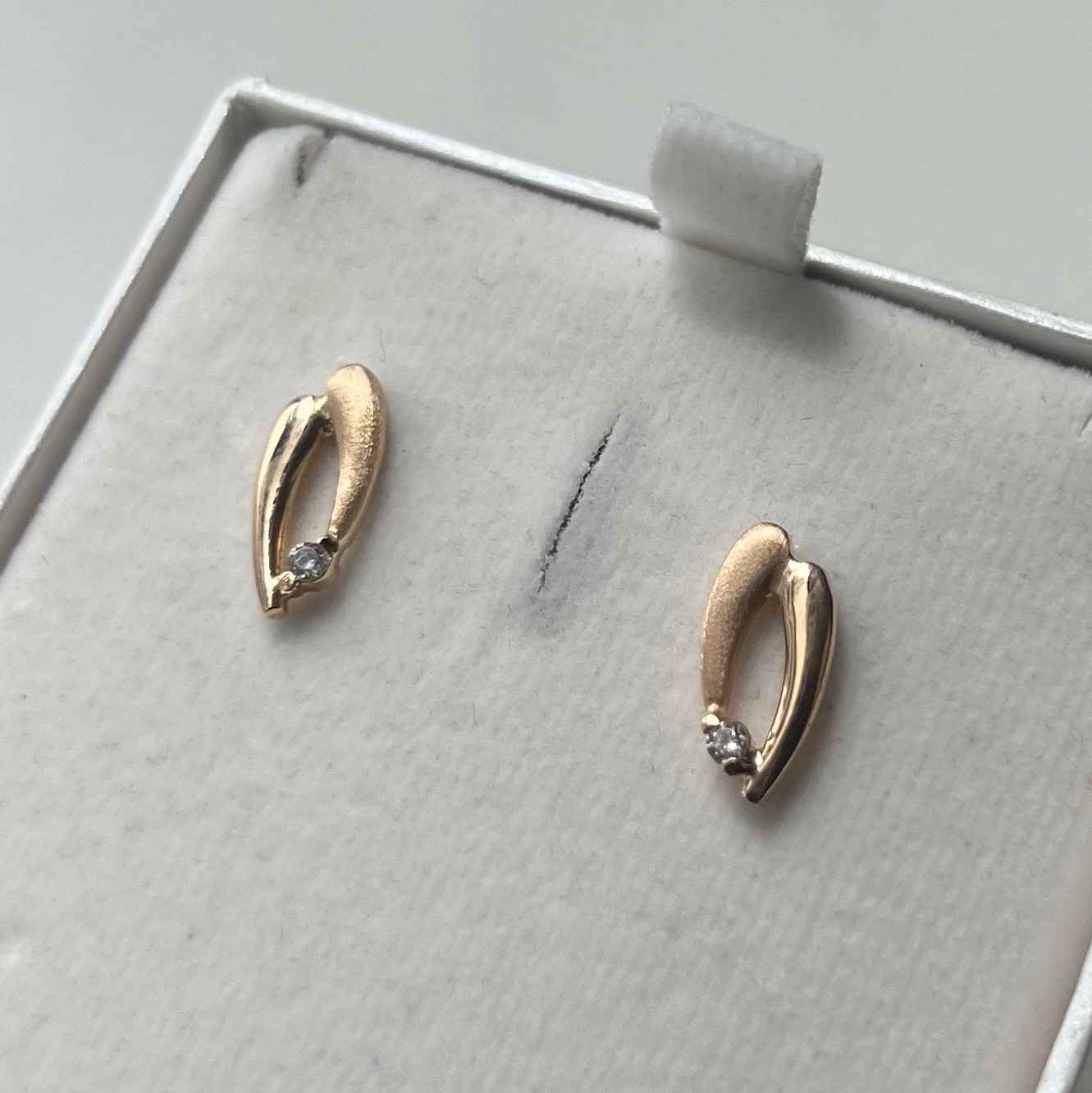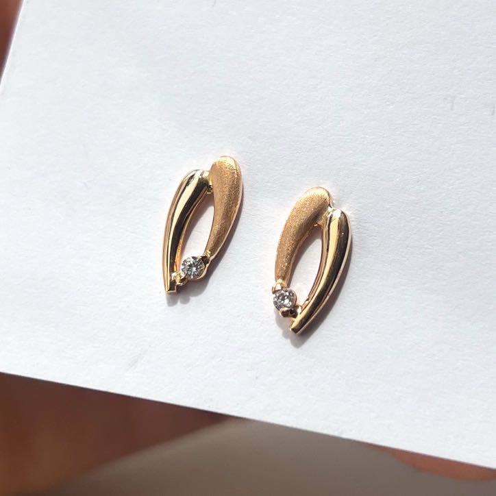 Aretes elegantes con un diseño curvo y alargado con engaste de cristal y detalles arenados elaborado en Oro 18K.