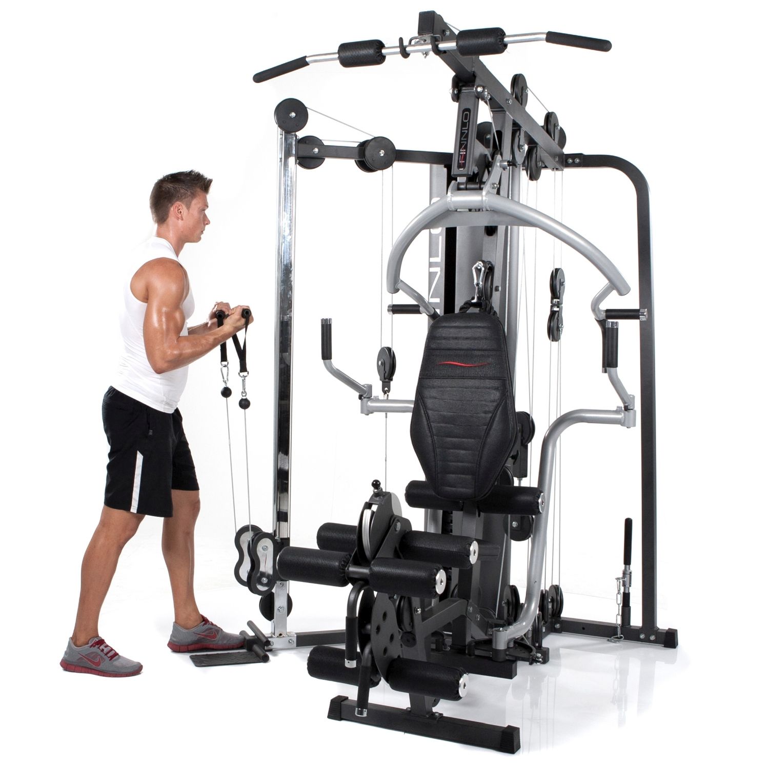 La estación de entrenamiento de fuerza FINNLO Autark 6000 ofrece una variedad de ejercicios para cada grupo muscular, así como equipamiento profesional y posibilidades de ajuste que hacen de la estación de entrenamiento de fuerza una verdadera alternativa al gimnasio.
