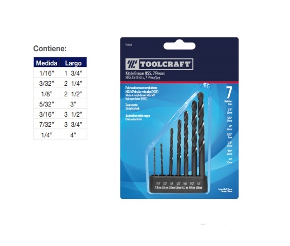 Juego de Brocas HSS 7 Piezas Marca TOOLCRAFT