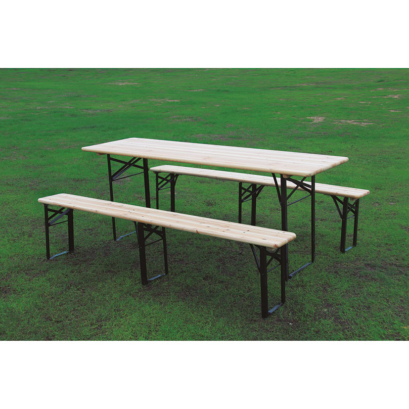 Estructura acero con recubrimiento de polvo electrostático. Tablero y banqueta de madera.