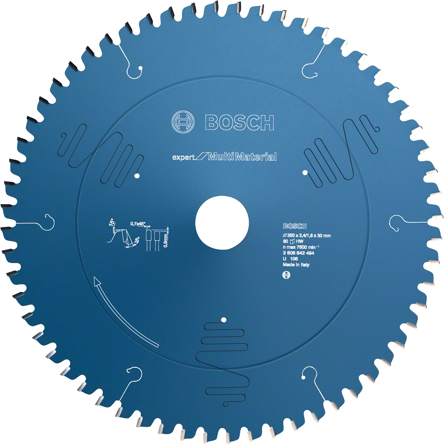 - Dientes Microteq (fabricados por Bosch) de carburo de alta densidad combinados con un diseño ideal para un uso universal