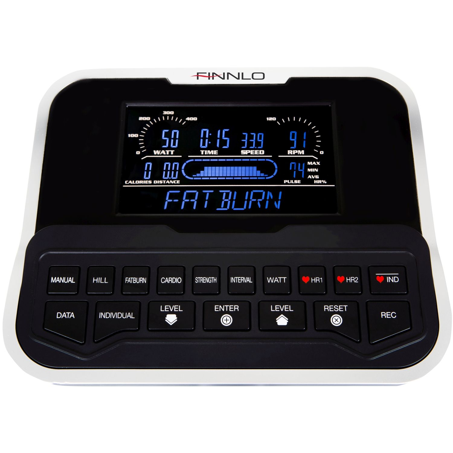 FINNLO Varon XTR es un ergómetro de clase premium con el que puede hacer que su resistencia y, por lo tanto, su sistema cardiovascular sean seguros y específicos. Los variados programas de computadora del Varon XTR lo motivan a hacer un entrenamiento físico regular y no dejan que surja el aburrimiento. Un movimiento dinámico de pedaleo aumenta su sistema cardiovascular, de modo que se logra un alto consumo de calorías y una quema de grasa efectiva. De esta manera, no solo promueve su salud, sino que también entrena específicamente para un cuerpo delgado y bien formado.