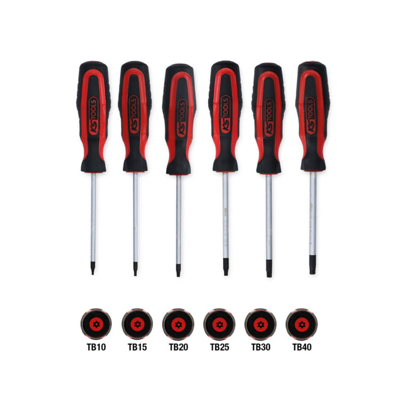 Equipada con: – 5 destornilladores ERGOTORQUEplus, TB10 – TB15 – TB20 – TB25 – TB30 – TB40.