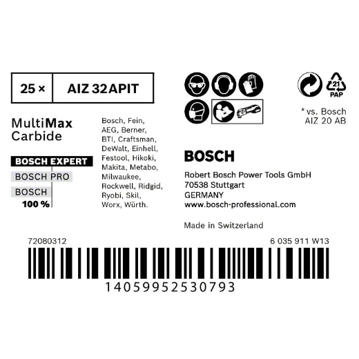 Dura hasta 50 veces más que la hoja Bosch AIZ 20 AB – Si trabajas en edificios o vehículos, una hoja de multiherramienta que realiza grandes cortes en cualquier material te puede facilitar mucho la vida laboral. Al integrar todas las técnicas de fabricación más avanzadas de Bosch, EXPERT MultiMax aporta una versatilidad sin igual a tu multiherramienta. Esta hoja de multiherramienta de gama alta cuenta con lo último en tecnología Bosch Carbide Technology: Su tira de dientes ultraduros utiliza el exclusivo diseño Bosch Curved-Tec, por lo que es la primera hoja que gestiona cortes de inmersión sin vibraciones en chapas metálicas. Además, la última versión de EXPERT MultiMax cuenta con un recubrimiento adicional en sus dientes de carburo para conseguir una mayor longevidad. Las hojas Bosch Curved-Tec se convirtieron en las favoritas gracias a su capacidad de inmersión limpia en los materiales y por realizar cortes difíciles a un alto nivel. Con la hoja Bosch EXPERT MultiMax de multiherramienta puedes aplicar esta capacidad de corte por inmersión a los materiales más resistentes, como láminas metálicas, fibra de carbono y ladrillo rojo. Enganche Starlock para óptima transmisión de fuerza y un cambio de hoja práctico en solo 3 segundos.