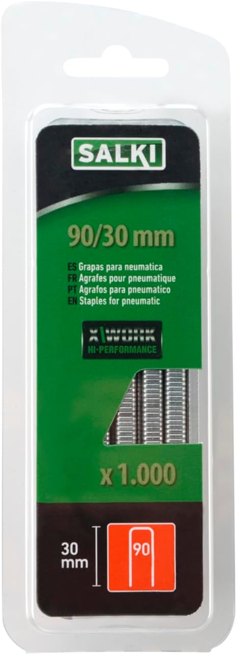 Las Grapas 90 en Blister 1000u están diseñadas para ofrecer una fijación firme y segura en una variedad de aplicaciones. Gracias a su diseño funcional y alta calidad, estas grapas proporcionan un rendimiento confiable, lo que las hace ideales para proyectos de tapicería, carpintería y otras tareas que requieren una fijación eficiente.