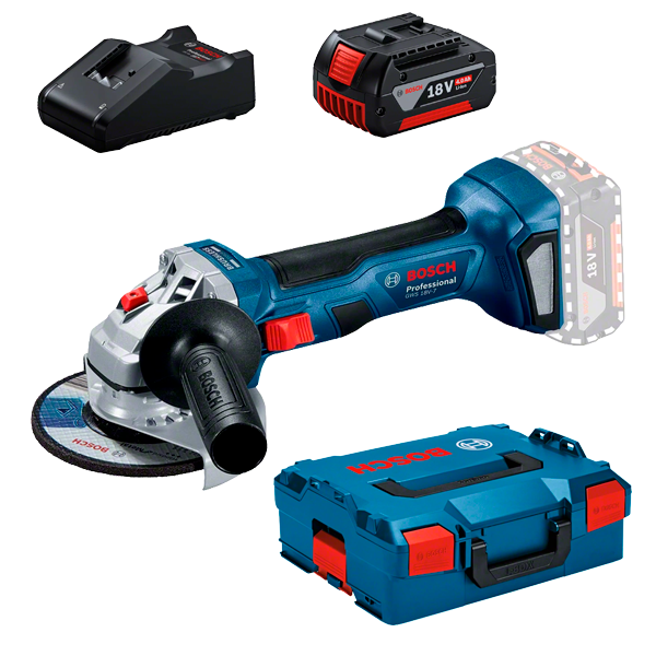 Kit Bosch Amoladora GWS 18V-7 Professional + 1 Batería Bosch GBA 4 Ah 18 V + Cargador Bosch GAL 18V-40 + L-Boxx: Potencia y Versatilidad en un Solo Paquete