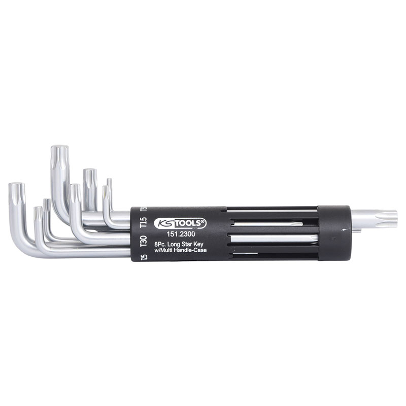 Equipado con: – Llave Allen Torx 8x, larga, T10 – T15 – T20 – T25 – T30 – T40 – T45 – T50.