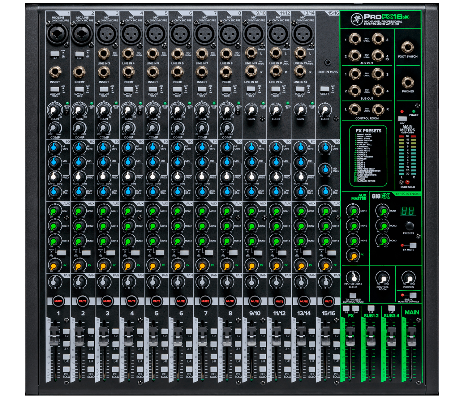 Increíble potencia y efectos: el Mackie ProFX16v3 es una consola de mezcla de 16 canales con 11 preamplificadores de micrófono Onyx con 60 dB de espacio para la cabeza y un motor de efectos integrado con 24 FX integrado, lo que lo hace muy adecuado para sonido en vivo, grabación en casa y creadores de contenido.