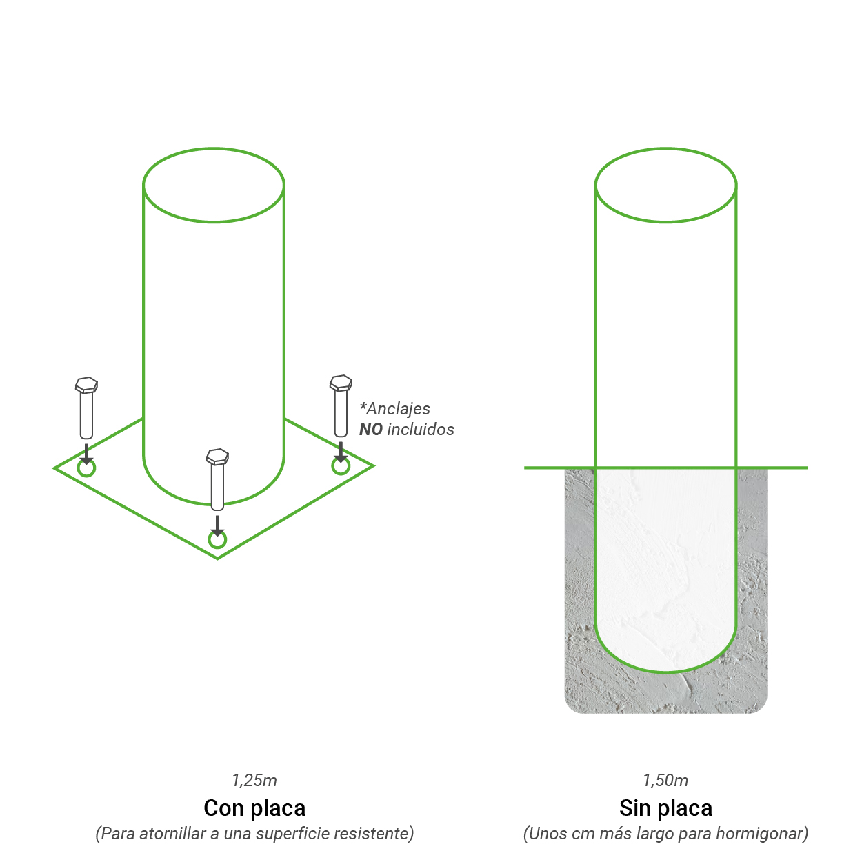 *Opción «con placa» NO incluye anclaje metálico