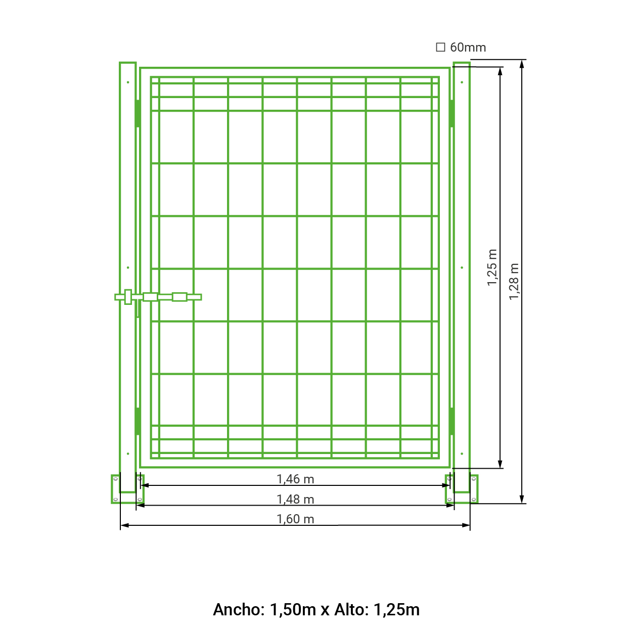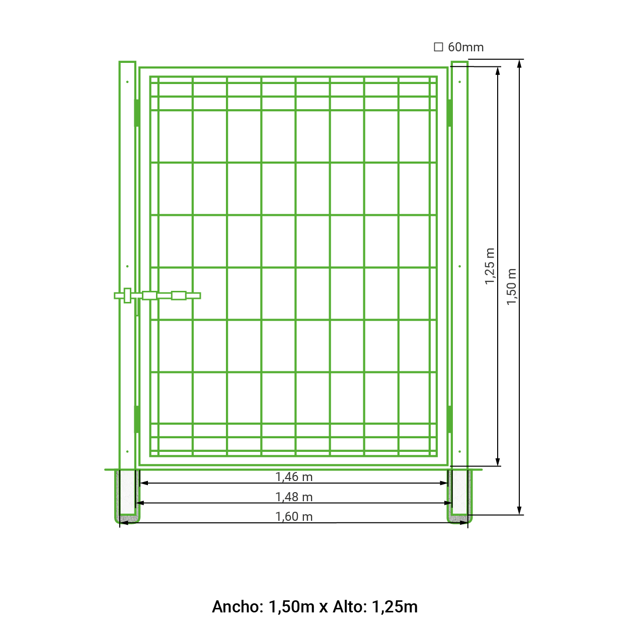 Puerta abatible 1 hoja hércules galvanizada 1,25 metros alto x 1,50 metros ancho