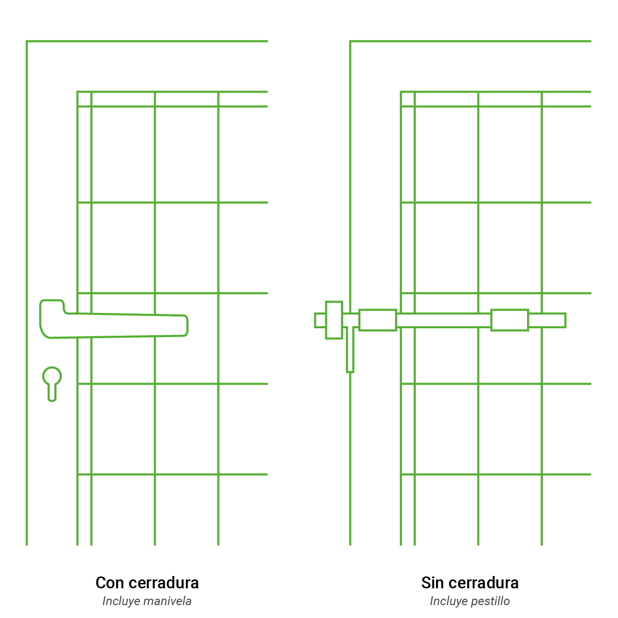• Cualquier opción de apertura no estándar (derecha hacia adentro), incrementa el precio en 5 € y añade cinco días laborables al plazo de entrega habitual debido a su fabricación