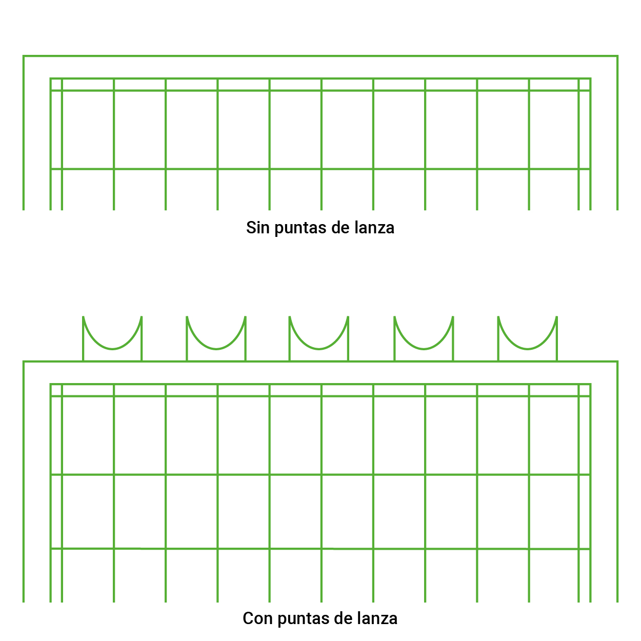 - Postes 60×40 en los extremos para sujeción de malla