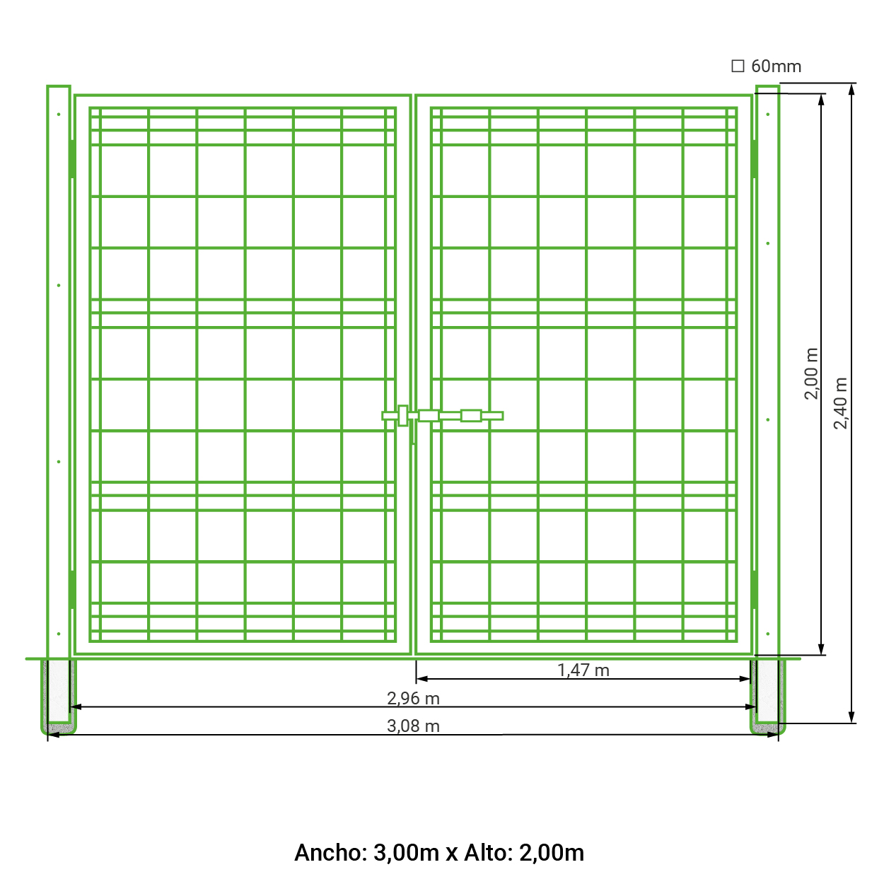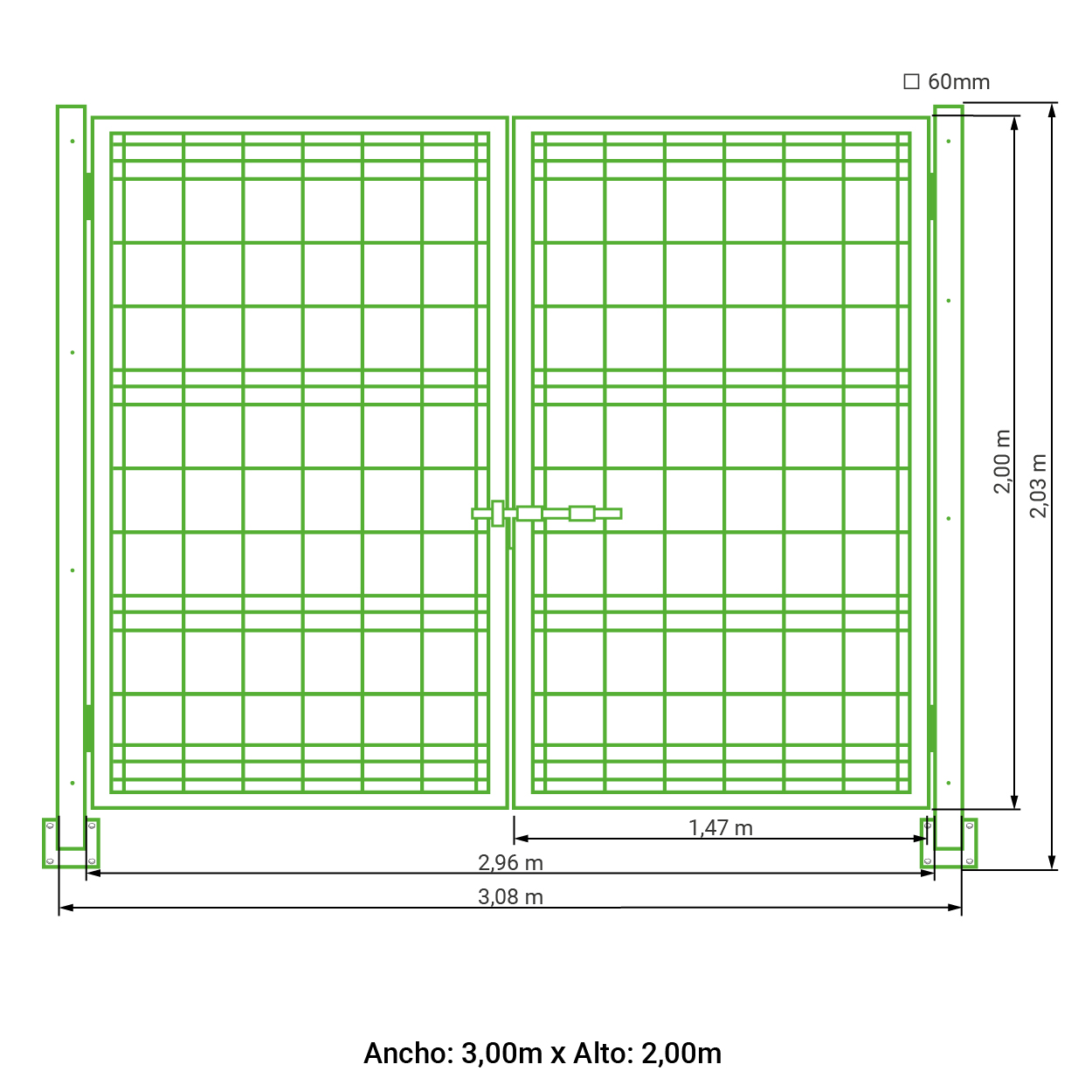 Puerta vehicular 2 hojas hércules blanco de 2,00 metros alto x 3,00 metros ancho