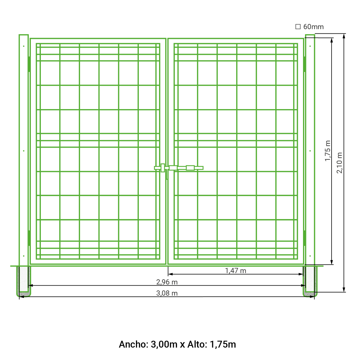 Puerta vehicular 2 hojas hércules galvanizada de 1,75 metros alto x 3,00 metros ancho