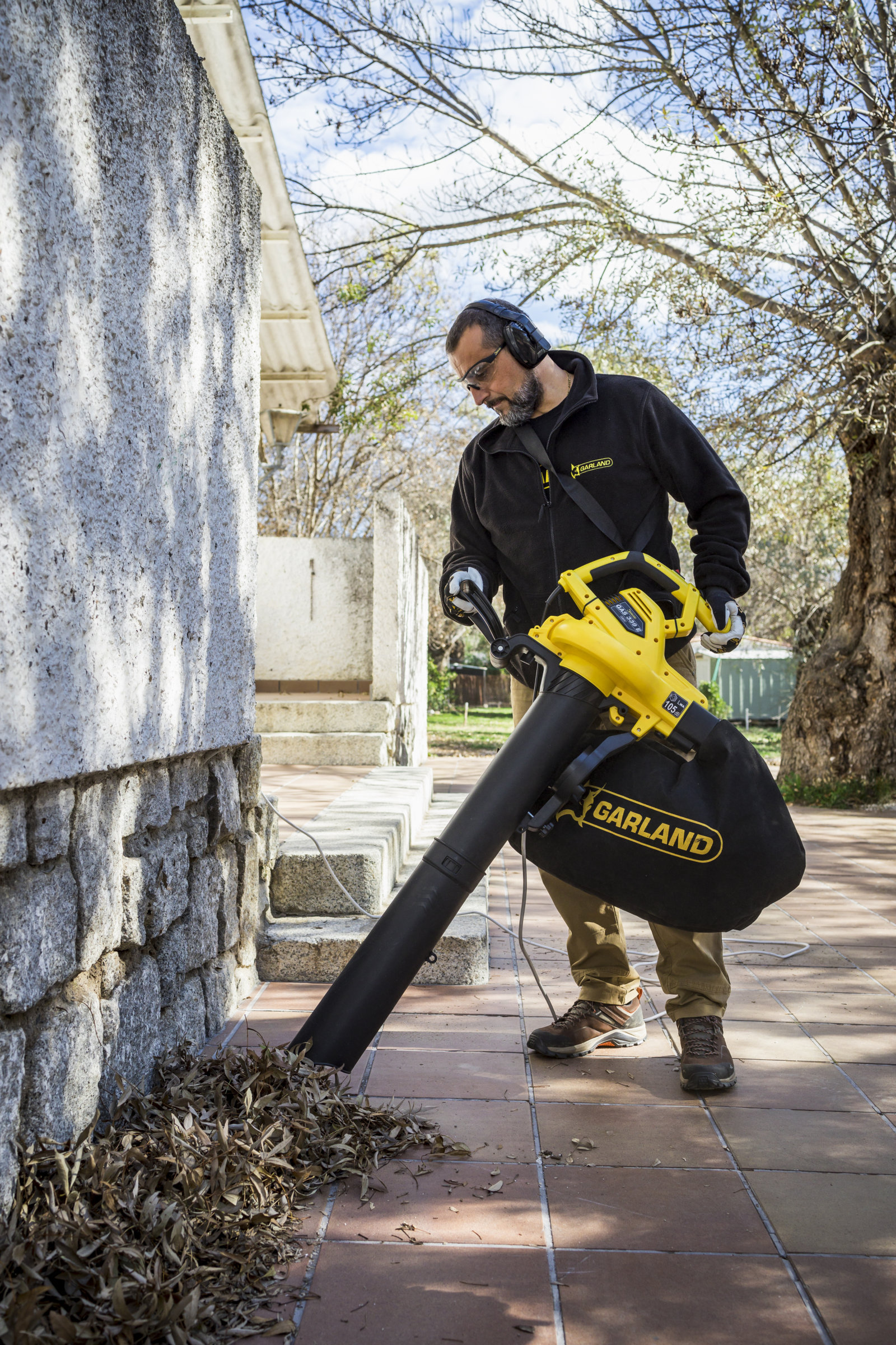 Soplador, aspirador, triturador y recogedor, en una sola máquina eléctrica enchufable de 3.000 W de potencia, muy ligero, potente y polivalente. Con