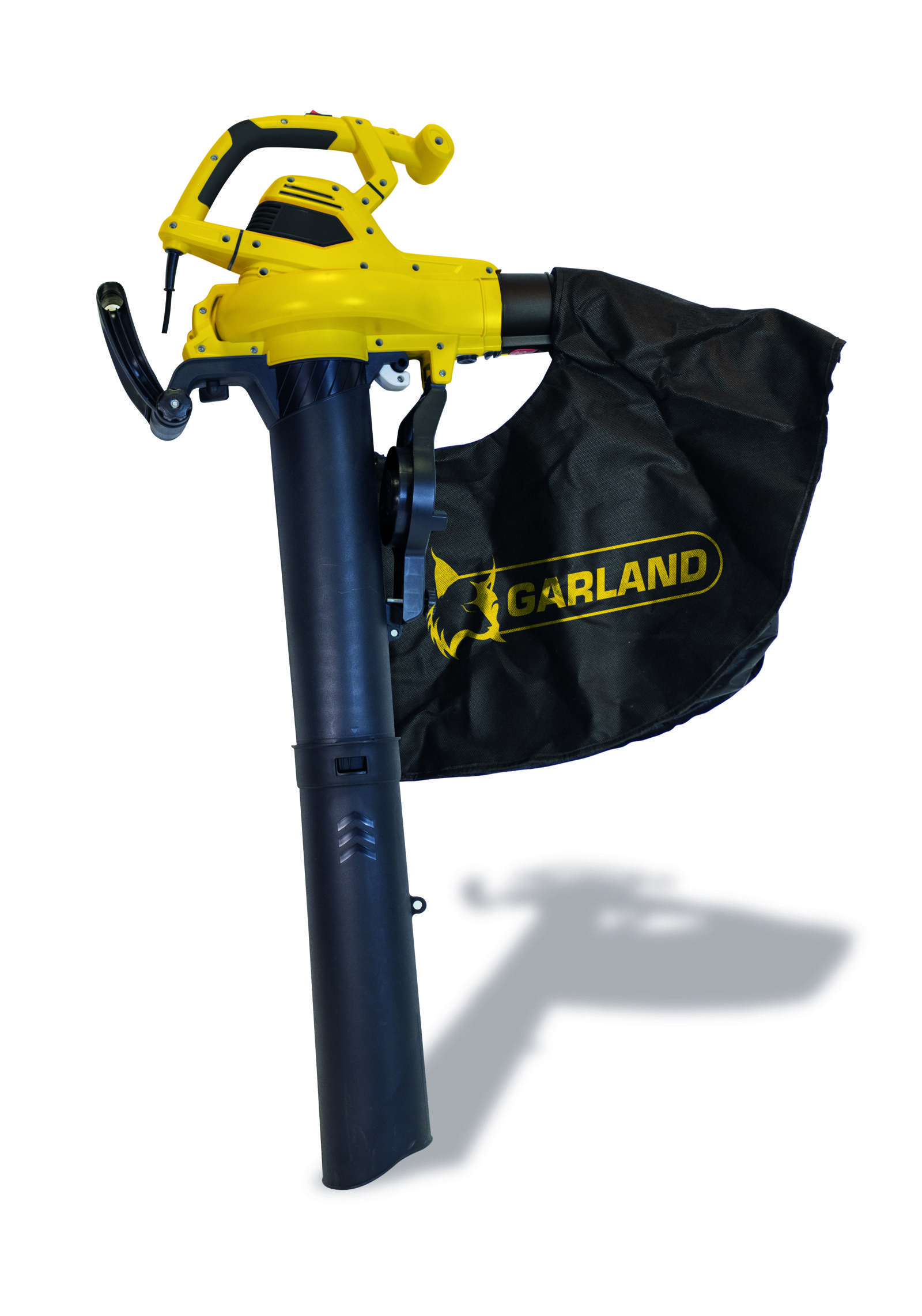 Soplador, aspirador, triturador y recogedor, en una sola máquina eléctrica enchufable de 3.000W de potencia. Muy ligero, potente y polivalente. Con saco de recogida y regulación